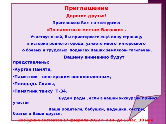 На ваш выбор предлагается три варианта экскурсии, . Travel picture » планирование путешествий » что взять на экскурсию? Акции на выставки и экскурсии: